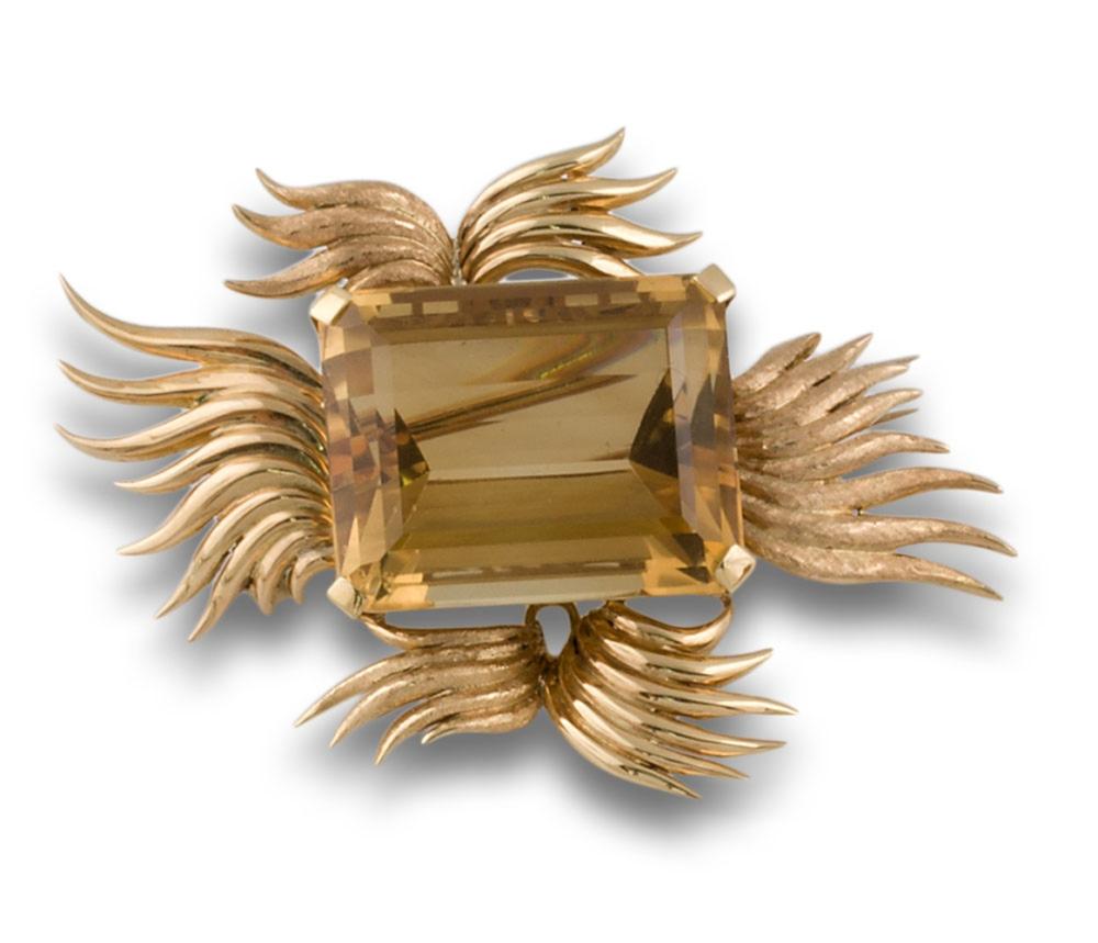 BROCHE RAYOS ORO CUARZO