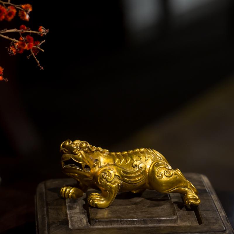 A GILT-BRONZE AUSPICIOUS BEAST ORNAMENT