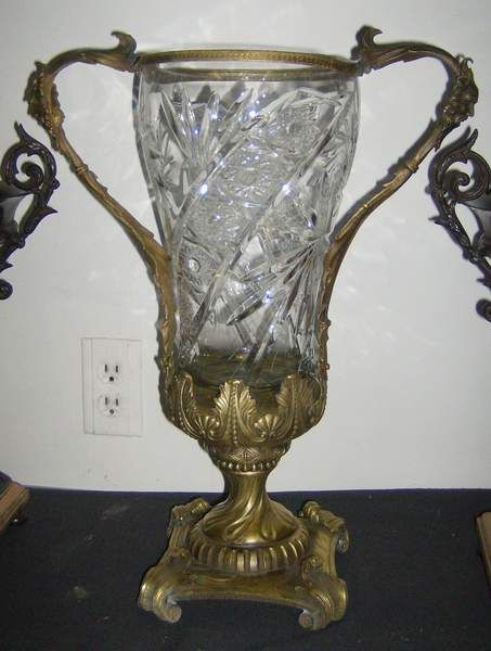 Bronze & glass handled vase