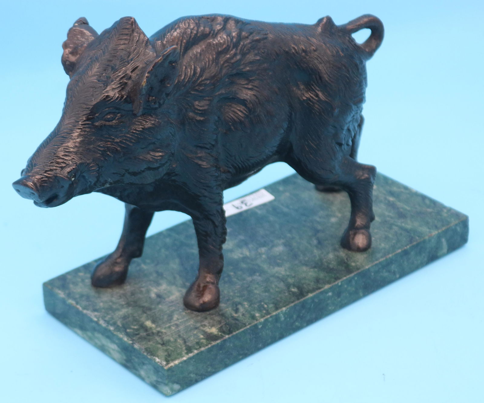BRONZE BOAR ON MARBLE BASE, 20TH C. UNSIGNED 8"