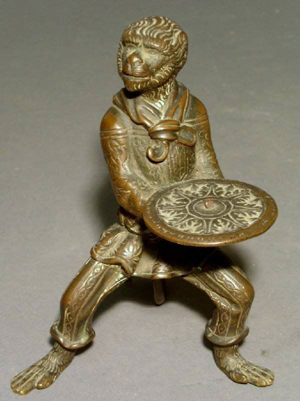 Bronze candleholder, monkey figure, late 19th c.