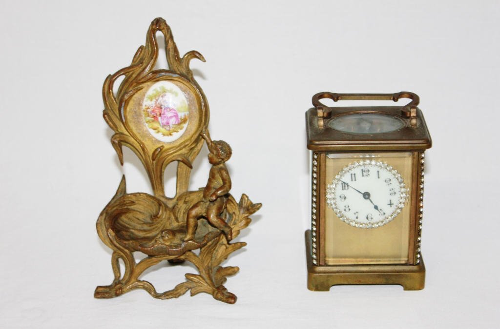 Lot of 2 Small Antique Clocks, inc. Carriage.331 Lots AwayClock with a Pair of Candelabra, Bronze, RococoMar 17, 2026French Clock With American WorksMar 10, 2026Antique French Mahogany & Brass Inlaid Mantel Clock by Marti c.1900An antique Empire-style pocket watch stand and a Swiss-made Conoseur clock and standMar 15, 2026A French gilt metal and alabaster clock garniture, c.1890,C1720 French Large Boulle Bracket Wall ClockMar 08, 202620thC French Rococo Style Brass Table ClockMar 08, 2026Bronze Mantel Clock, 19th century (Europe)Mar 17, 2026A FINE CHINOISERIE FRECH PARIS PORCELAIN &BRONZE CLOCK1 day LeftFrench Figural Mantel Clock, Bronze & Wood BaseMar 15, 2026Louis XVI Style Bronze & Porcelain ClockApr 14, 2026VICTORIAN SHELF CLOCK7 days LeftTiffany & Mikimoto Miniature ClocksMar 14, 2026Figural New Haven Enameled Brass Mantel ClockMar 08, 2026A retro Angelus Carillon alarm clock circa 1950 and a French brass carriage clock, Russells LTD.Mar 15, 2026