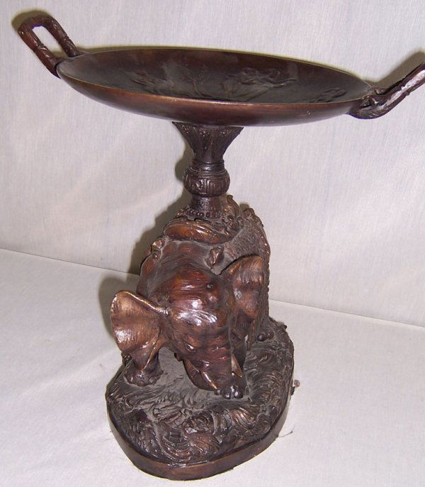 Bronze elephant stand with compote