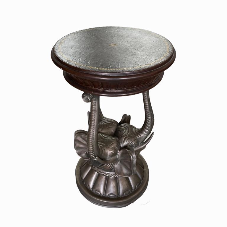 Bronze Figural 3 Elephants Head Motif Side Table