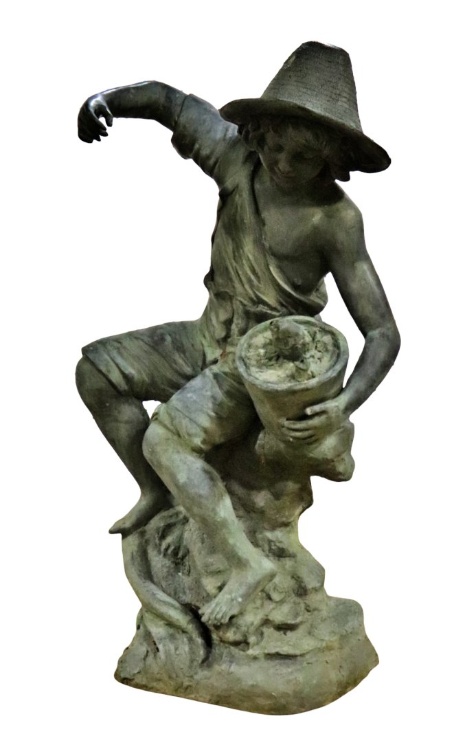 SoldPatinated bronze figural fountain 50" tallPatinated bronze figural fountain 50" tallSee Sold Price