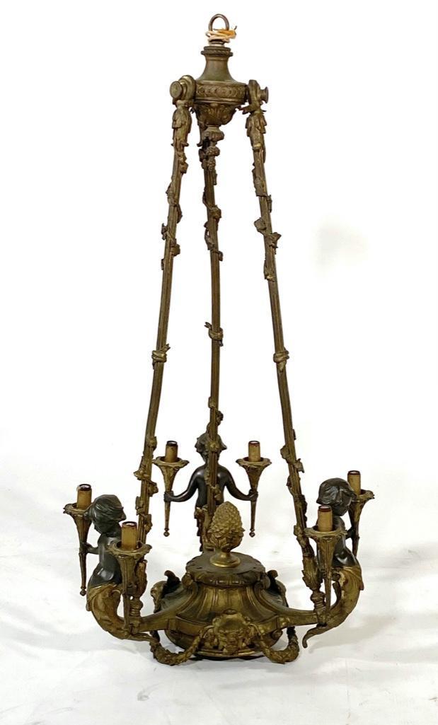 Bronze Figural Six Light Chandelier