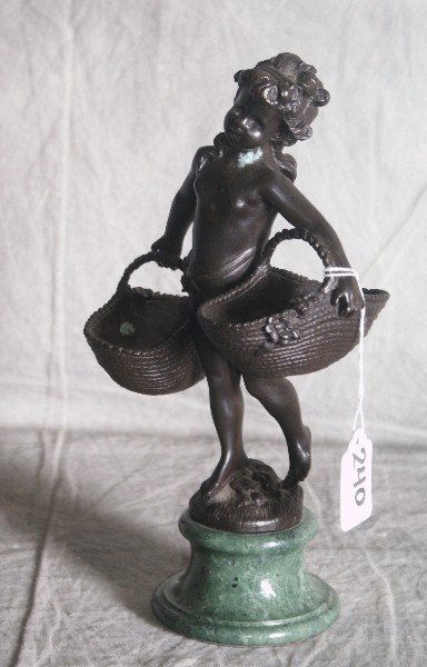 Bronze figure child carrying baskets signed Auguste Mor