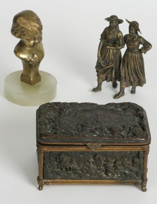 Group of four vintage cabinet sculptures: pair satyr bronze figures on marble bases, sterling silverApr 25, 2026Five Thai Bronze Miniature Figures, 20th Century, 12FM3 days LeftGroup of Novelty Souvenir Figures inc.: Disney/FolApr 27, 2026Group of 10 2023 Hasbro Indiana Jones Character FiguresMay 02, 2026Music Box Girl & Others Porcelain & Resin 15pc LOT4 hrs LeftGroup of 2000s Hasbro Star Wars Action Figures and VehiclesMay 02, 2026RARE Cir 1900 Austrian Vienna Cold Painted Bronze Monkey Band Group2 days LeftAn assembled group including African style figural bells2 days LeftGroup of 3 Metal Cutout Sculptures, Seated Female FiguresApr 25, 2026Group of 2 DC Direct The Classic/ New Teen Titans FiguresMay 02, 2026A GROUP OF SEATED BRONZE LIONSApr 25, 2026A Group of Four Patinated Bronze Figures or BookendsApr 28, 2026Roman Bronze Miniature Busts - Figures & Lion1 day LeftA BRONZE MIRROR WITH DEITY AND HUMAN FIGURESMay 02, 2026A group of nine Mesoamerican pottery figures1 day LeftA GILT-BRONZE FIGURES OF THE THREE BUDDHASApr 24, 2026
