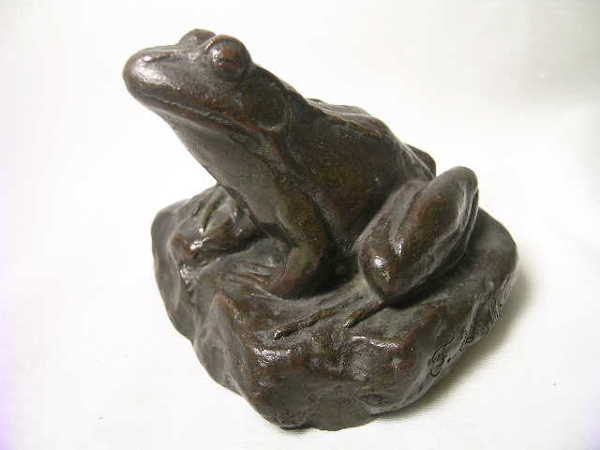 BRONZE FROG SCULPTURE SIGNED FOUNDRY MARK