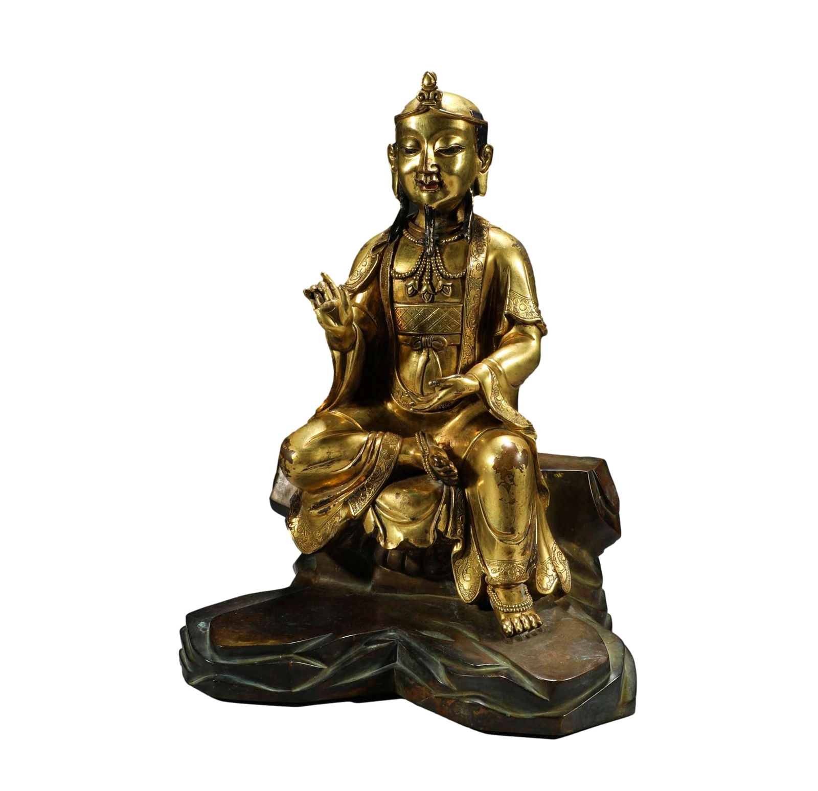 A Solemn Gilt Bronze Statue of Padma Sambhava