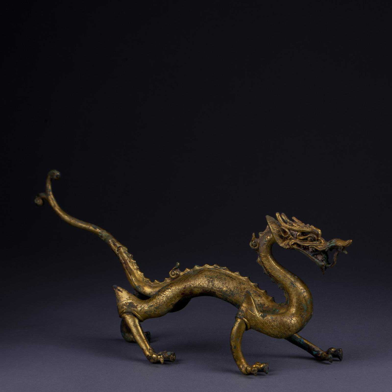 A Rare Gilt Bronze Dragon Ornament