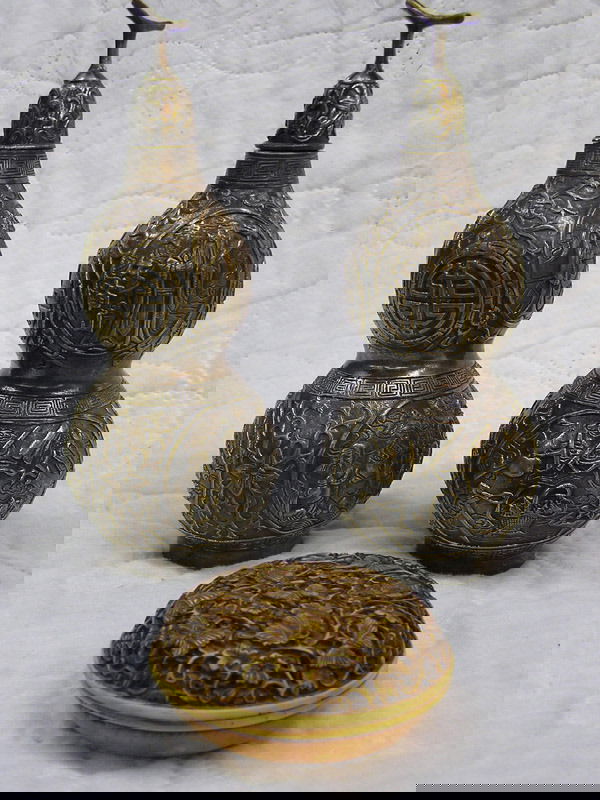 Bronze Gourd Vases and Seal Paste Box