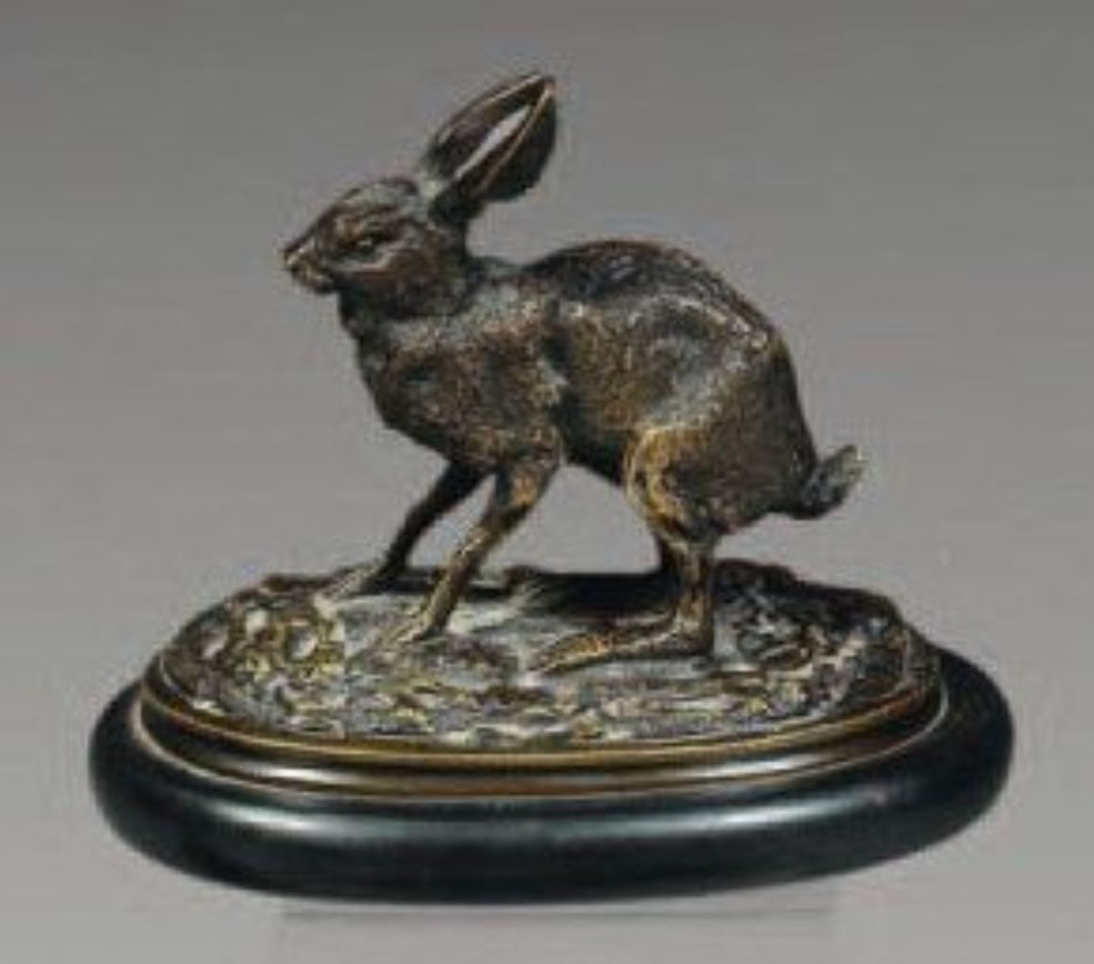Jumping hare statue - Bronze hareTitle: Jumping hare statue - Bronze hare Maker: Unknown Origin: Belgium Date/Period: Late 20 th century Materials: Bronze Dimensions: Height: 48 cm / 19.2 inchesWidth: 25 cm / 10 inches Description: BSee Sold Price