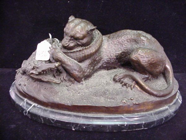Bronze Leopard Devouring Gavial Statue After BARYE
