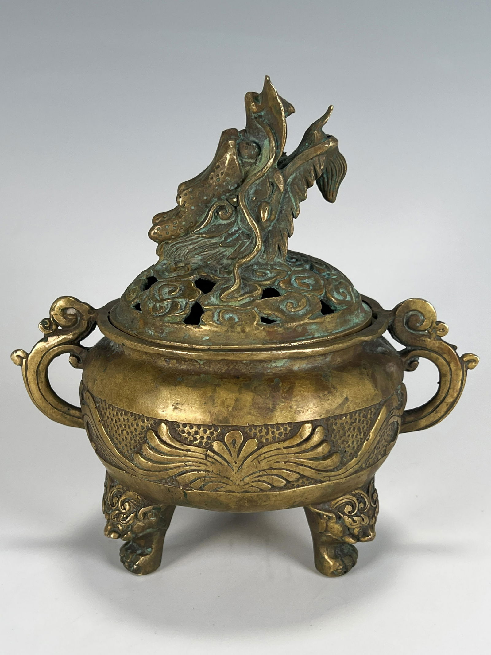 BRONZE LIDDED TRIPOD CENSER