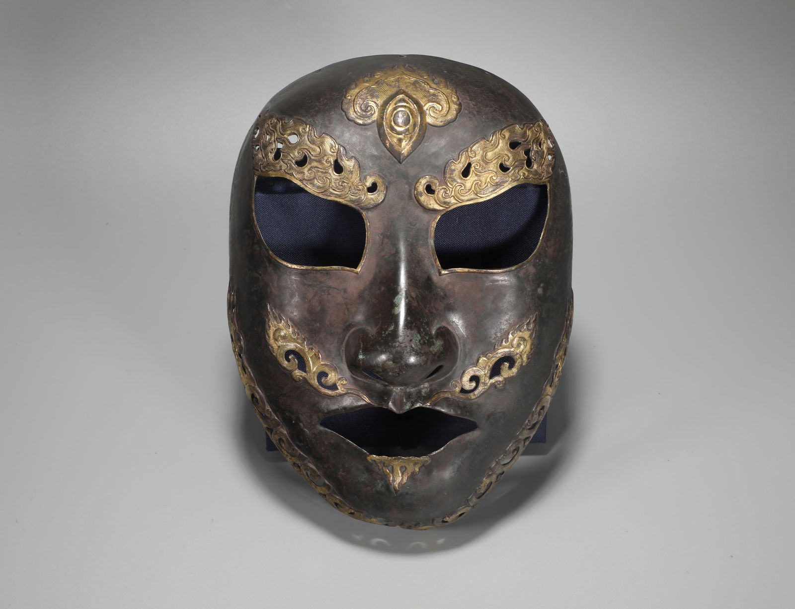 A BRONZE HAMMERED MASK