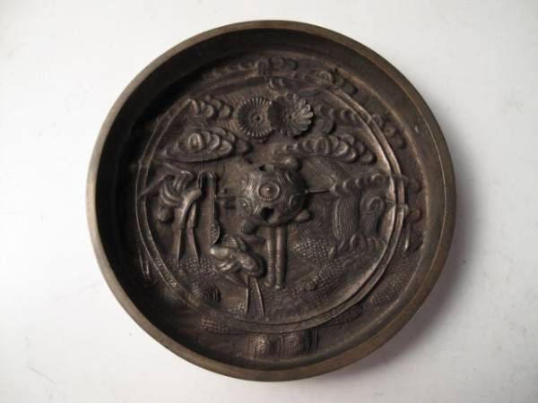 Bronze Mirror Carved Turtle And Crane
