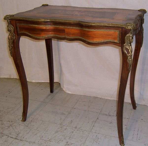 Bronze Mounted Inlaid 1 Drawer Tea Table.