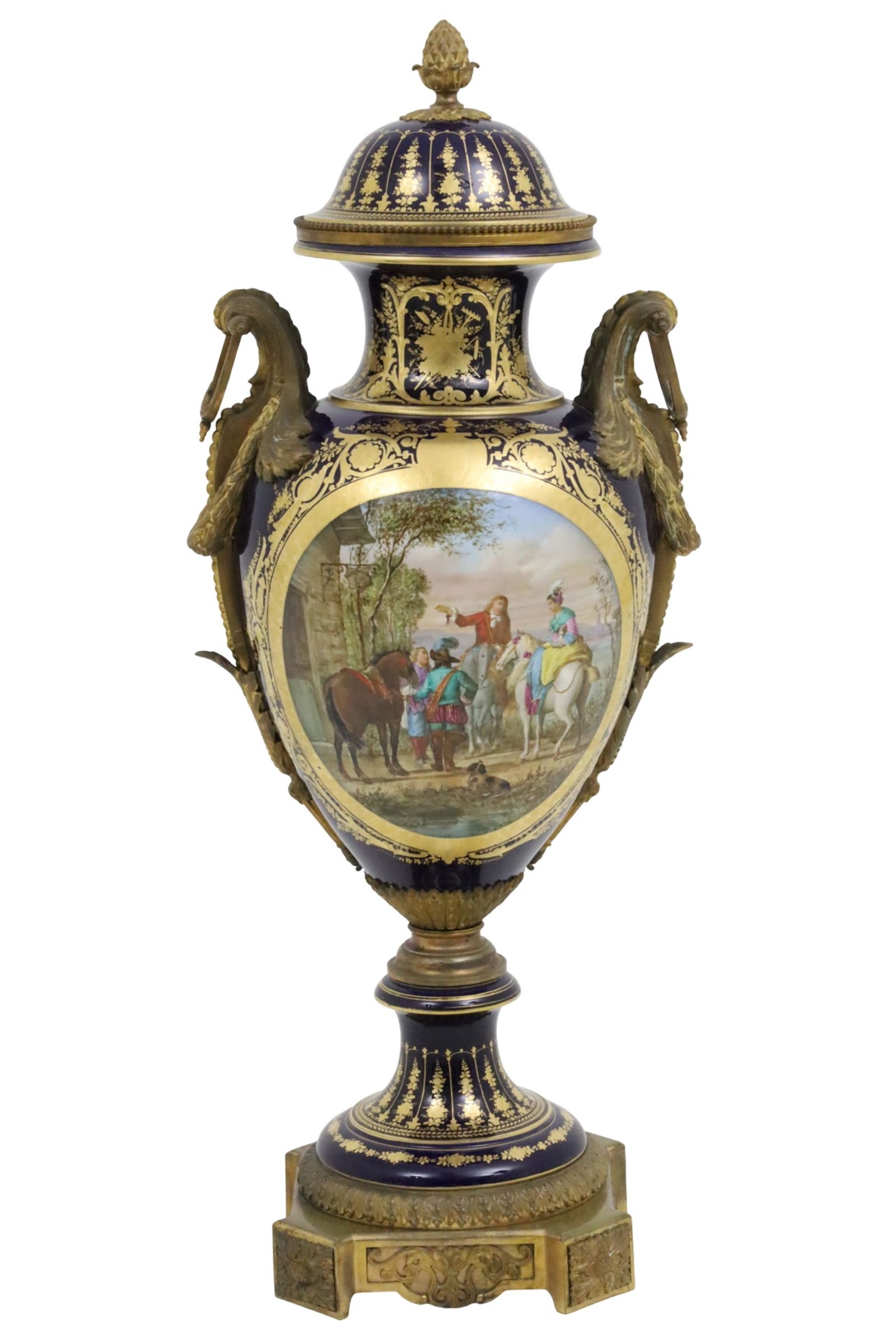 BRONZE MOUNTED SIGNED SEVRES CAPPED URN