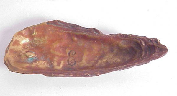 Bronze oyster dish, monogrammed with an E, 7" x 2