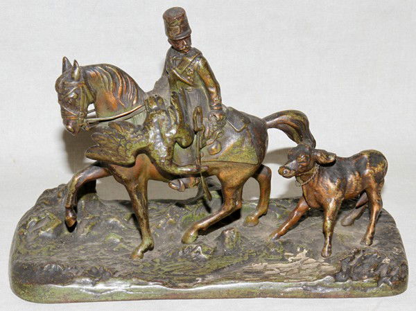 BRONZE POLISH HUNTER ON HORSEBACK 19TH.C.