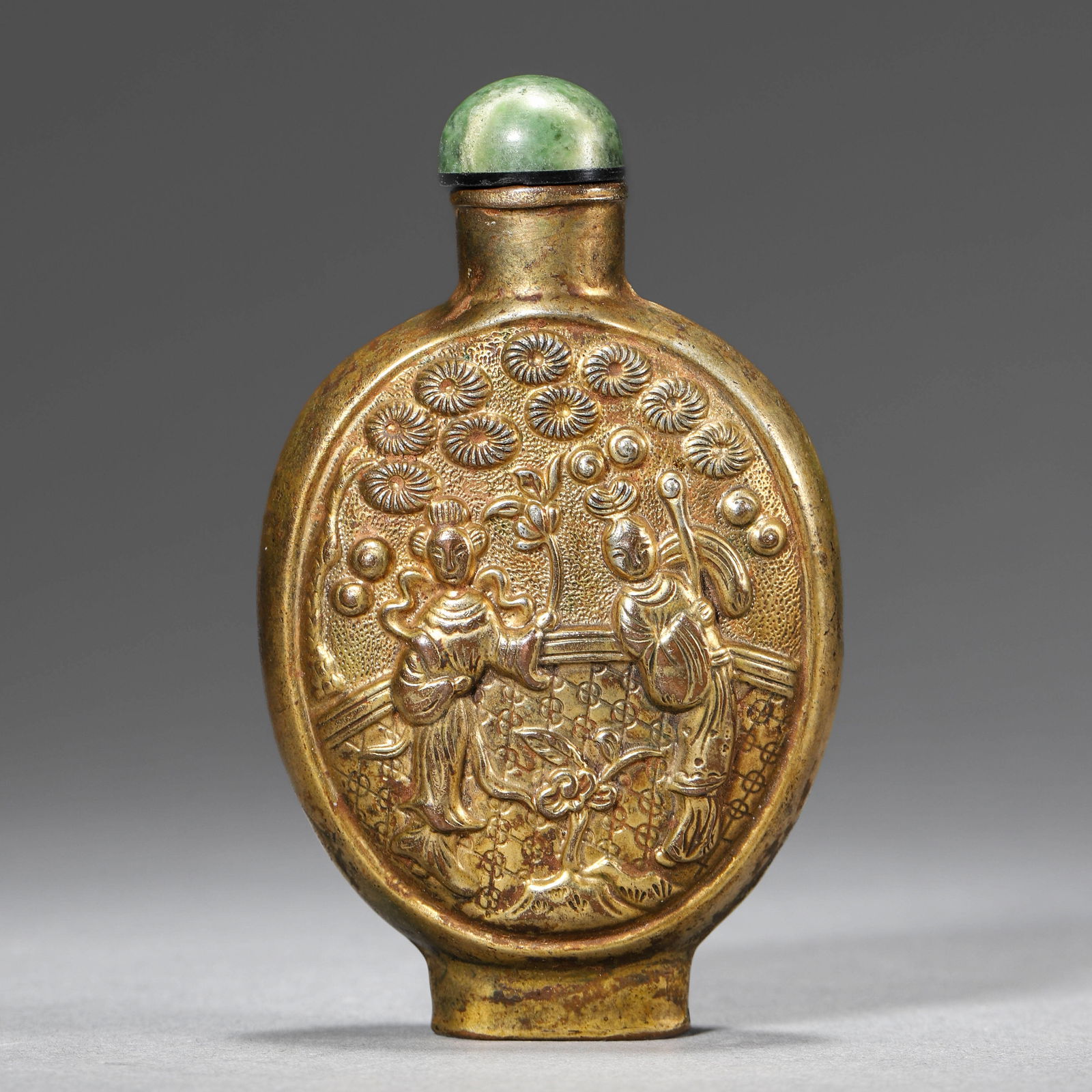 A GILT-BRONZE ENAMELED SNUFF BOTTLE WITH WESTERN FIGURE MOTIFTop Notch Collections4.5(56)$2,8005 days Left