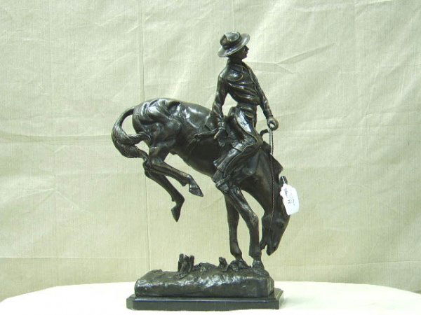 Frederic Remington - The Bronco Buster - Bronze Sculpture6 days LeftSigned Original Large American Outlaw Bronze Sculpture -15" x 12"4 days LeftWild West Americana Classic Cowboy Bronze Art Sculpture on Marble Base by F. Remington - 14" x 17"4 days LeftWestern Cowboy on Horseback w/ Shotgun Bronze Sculpture - 16" x 14"Mar 24, 2026Western Cowboy on Horseback w/ Shotgun Bronze Sculpture - 16" x 14"Mar 18, 2026Western Cowboy on Horseback w/ Shotgun Bronze Sculpture - 16" x 14"Mar 17, 2026Bronze Western Sculpture Cowboy on Horseback Statue Figure - 14" x 11"Mar 12, 2026Western Cowboy Bronze SculptureMar 24, 2026Cowboy on Running Horse Original Bronze Statue - 10" x 9.5"6 hrs LeftCowboy Jumping Fence on the Plains Inspired Bronze Statue - 11" x 10"Mar 11, 2026Cowboy Jumping Fence on the Plains Inspired Bronze Statue - 11" x 10"Mar 18, 2026Cowboy Jumping Fence on the Plains Inspired Bronze Statue - 11" x 10"Mar 24, 2026Breath Bronze Cowboy SculptureMar 11, 2026Cowboy on Horse Western Bronze Sculpture3 days LeftCowboy on Horse Western Bronze SculptureMar 24, 2026Classic Cowboy Will Rogers Statue by Frederic Remington Western Art Bronze Sculpture - 14" x 16"Mar 18, 2026