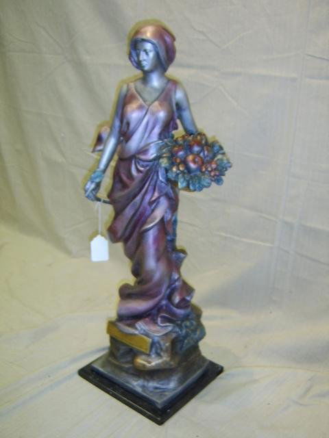 BRONZE-SCULPTURE POLYCHROME PAINTED VICT. LADY