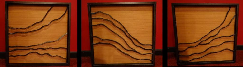BRONZE TRIPTYCH SCULPTURAL WALL PLAQUES, ABSTRACT
