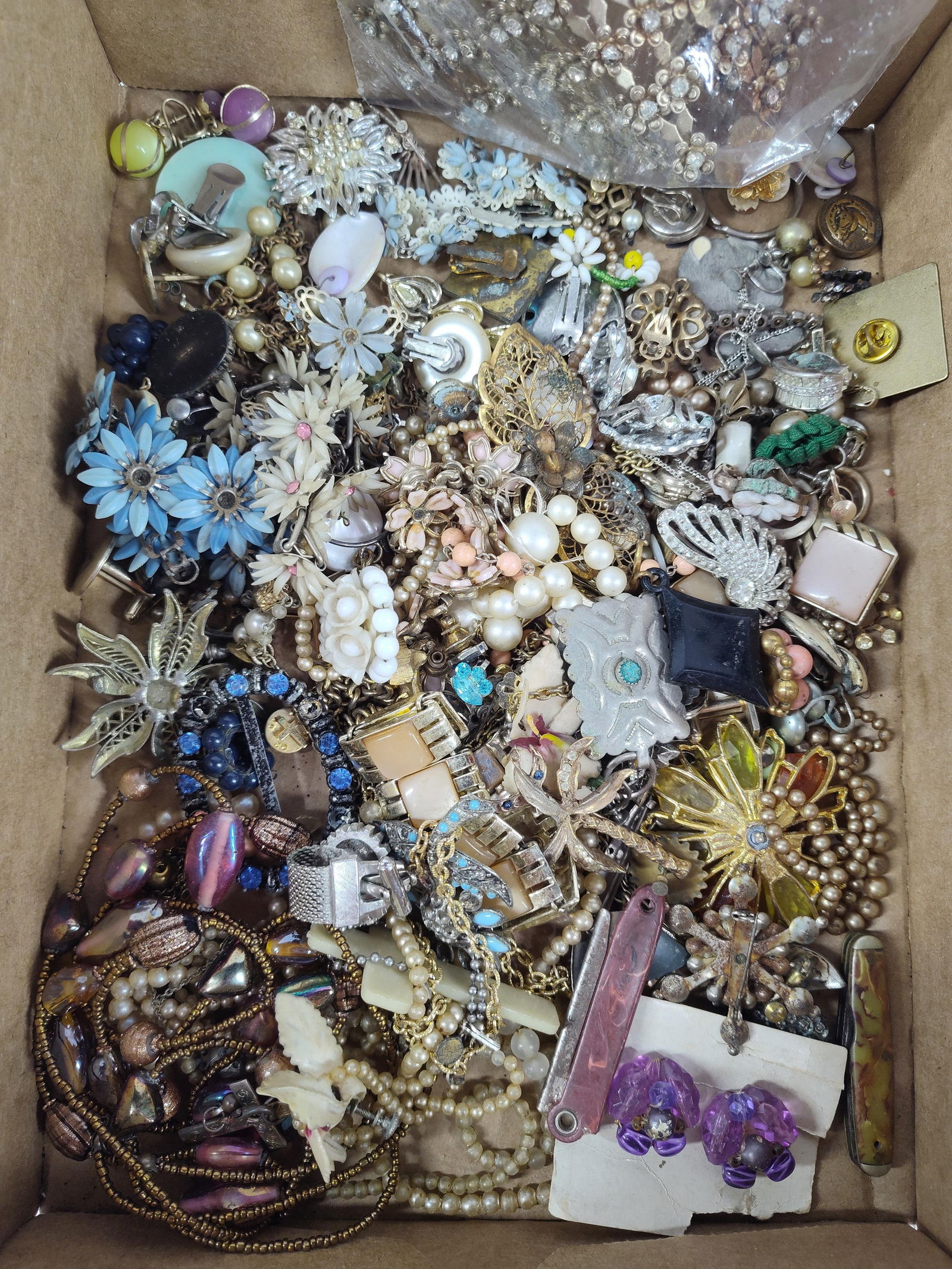 MIXED LOT BROOCHES, BEADS ETCLot of miscellaneous jewelry565 Lots AwayMIXED LOT BROOCHES, EARRINGS, BEADS ETCMIXED LOT WATCH, BEADED NECKLACES, BROOCHES ETCLarge Lot of Assorted Bracelets Inc. Many Styles, FinishesMar 30, 2026Large Lot of Assorted Jewelry, Pearls, Pendants, Bracelets, Pins and MoreMar 30, 2026Mixed Jewelry and Trinket Lot Loaded w/ Pins, Keychains, Bracelets, Brooches, Rings, Tie Tacks ETCMar 30, 2026Assorted Jewelry, Trinket, Collectible Lot Inc. Knives, Jewelry, Keychains and MoreMar 30, 2026Great Assorted Jewelry Lot Inc. Rings, Bracelets, Pins, Necklaces, Watches and MoreMar 30, 2026Large Black Accent Jewelry Lot Inc. Bracelets, Necklaces, Chokers, Rings, Earrings and MoreMar 30, 2026Pins, Brooches, Stones, Rhinestones, Beaded Jewelry and Misc. LotMar 30, 2026Lot of 14 Pieces of Costume Jewelry - Earrings, Brooches, Bracelet, etc.Collection of Vintage BroochesGroup of Costume Jewelry4 days LeftCollection of Costume Jewelry5 days LeftGroup of Costume Jewelry4 days Left