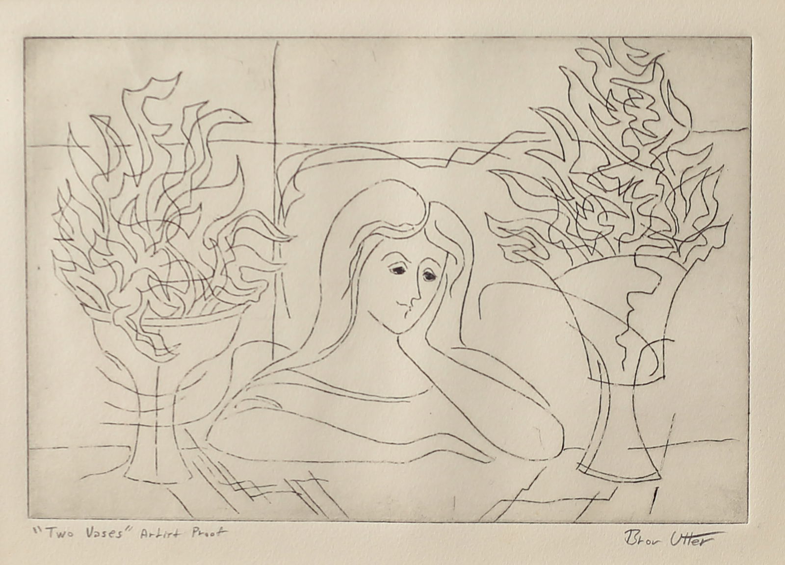 Bror Utter (Am. 1913-1993), Two Vases, Artist Proof, etching