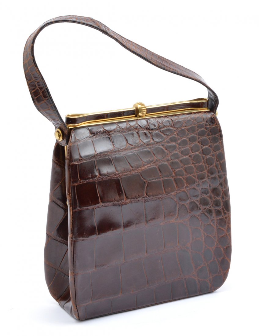 Vintage Genuine Crocodile Alligator Leather Handbag Ornate Frame Antique Purse RareMC Auction House$2005 days Left