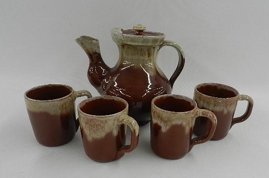 Brown Ceramic Tea Set with 4 Cups