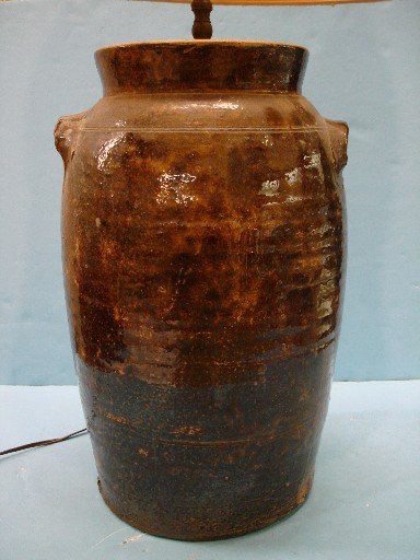 Brown Glazed Bennington Type Storage Jar/ Lamp