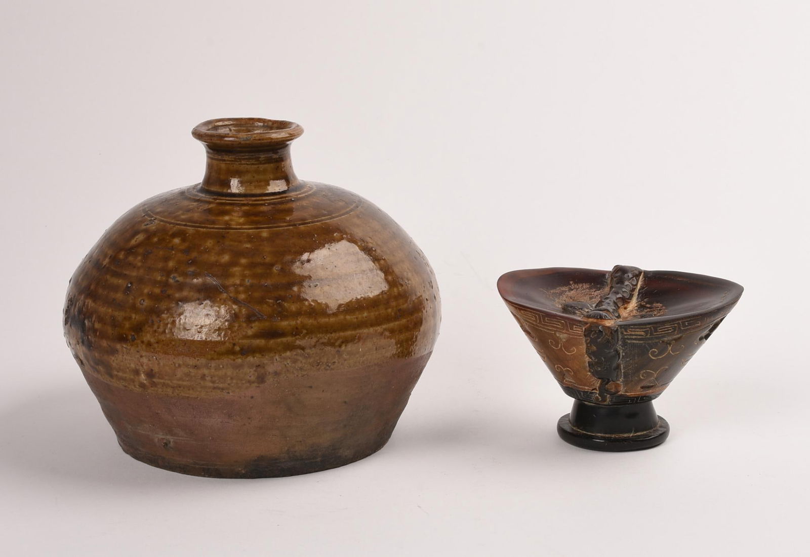 Brown Glazed Stoneware Round Vase