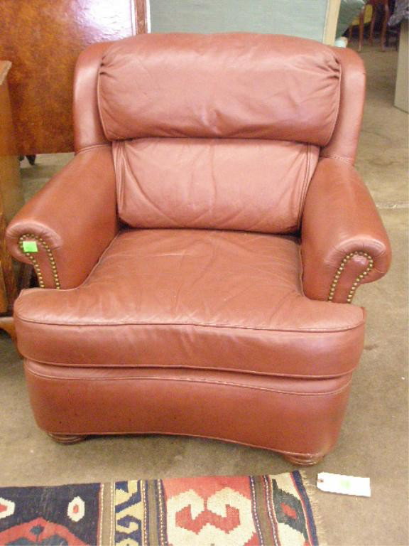 Brown Leather Overstuffed Armchair