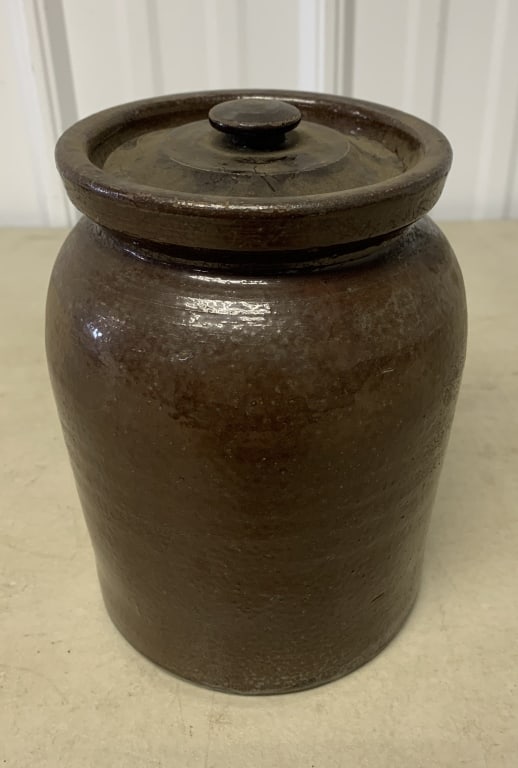 Brown Stoneware Jar with Lid