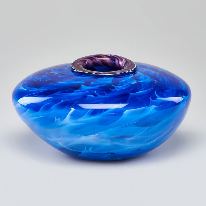 LARSON BLUE ART GLASS VASE, ARTIST SIGNED