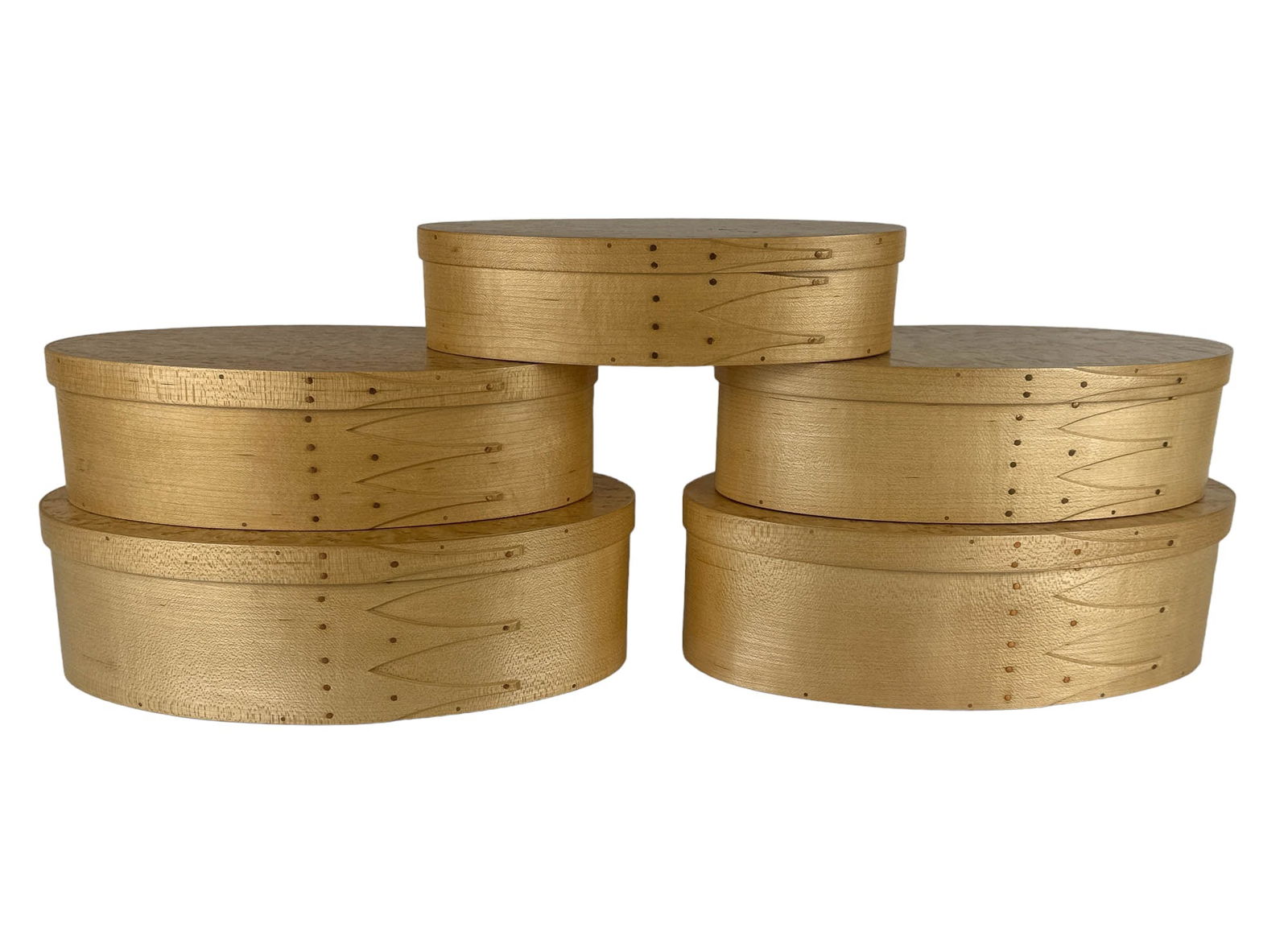 Bruce Pyle Birds Eye Maple Nesting Oval Boxes LOT