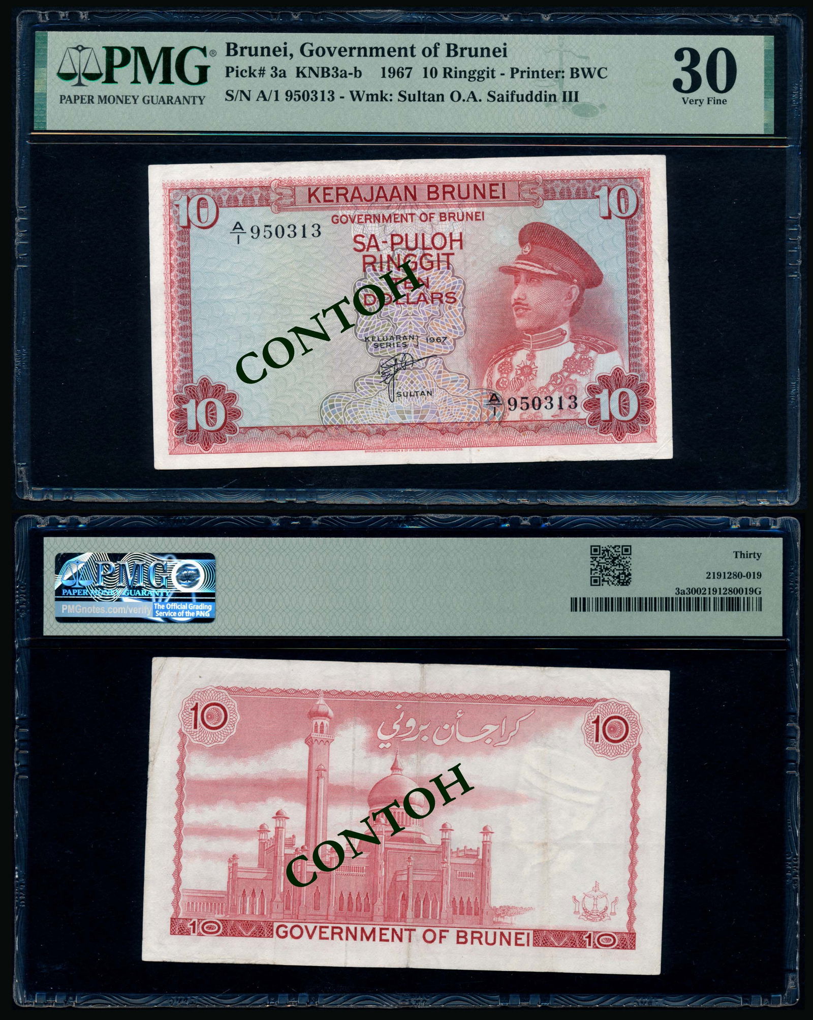 Brunei $10 1967 PMG