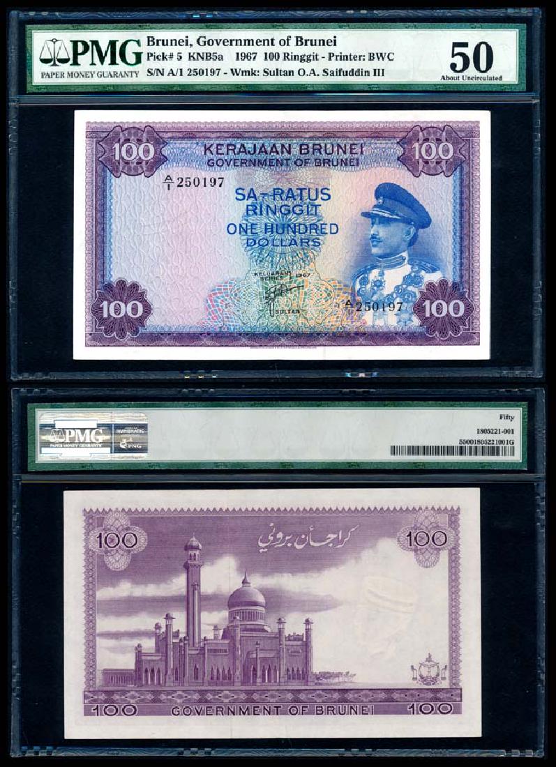 Brunei $100 1967 PMG AU50