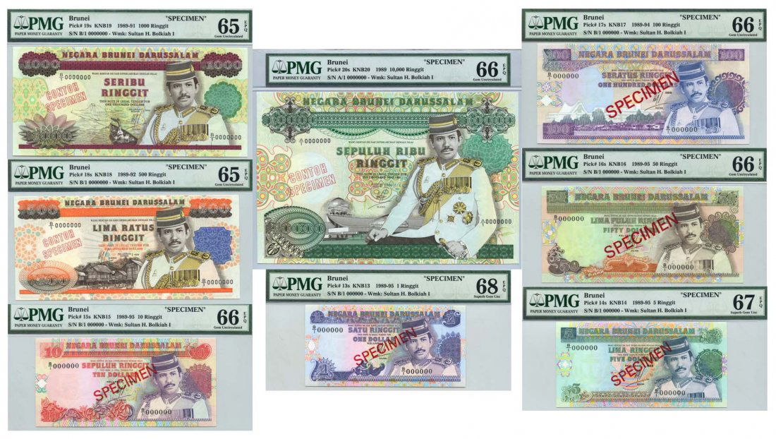BRUNEI 3rd Series: Specimen Complete Set 1989-95 (8pcs)