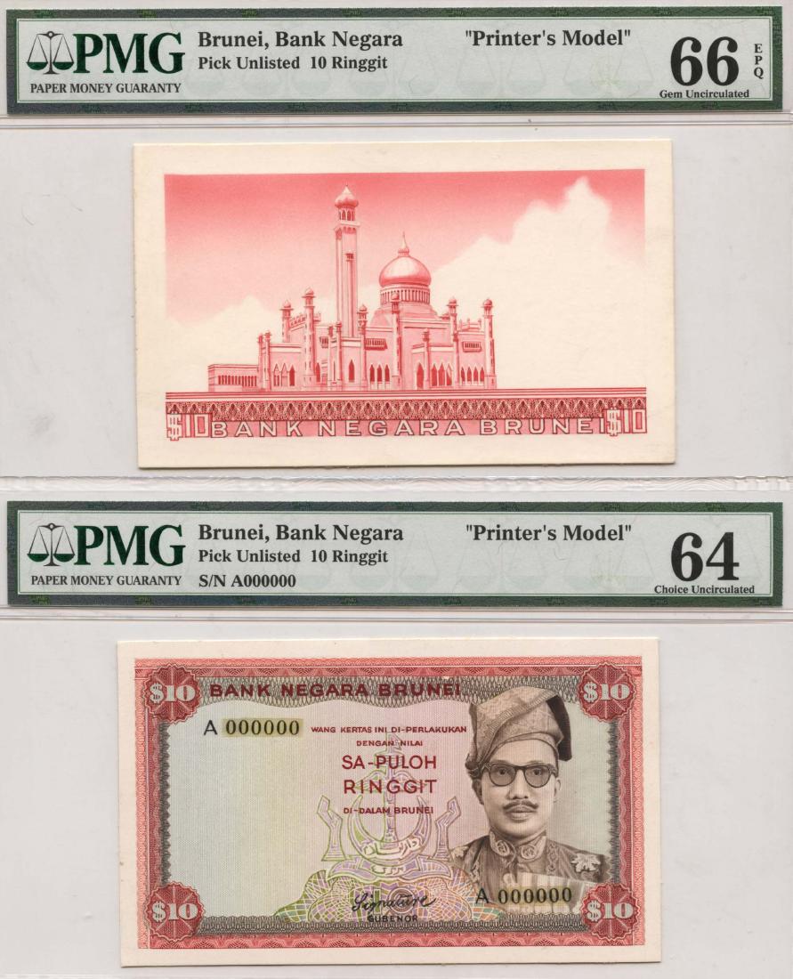 SoldBRUNEI 3rd Series specimen3rd Series: SPECIMEN $1 1992 B/12 000000 (KNB13) PMG 66 EPQ (2pcs)See Sold Price