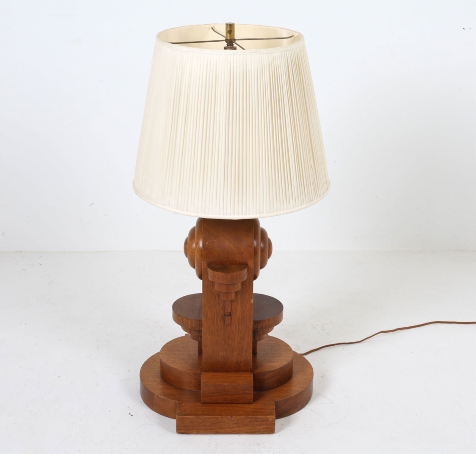 BRUTALIST SCULPTURAL OAK TABLE LAMP