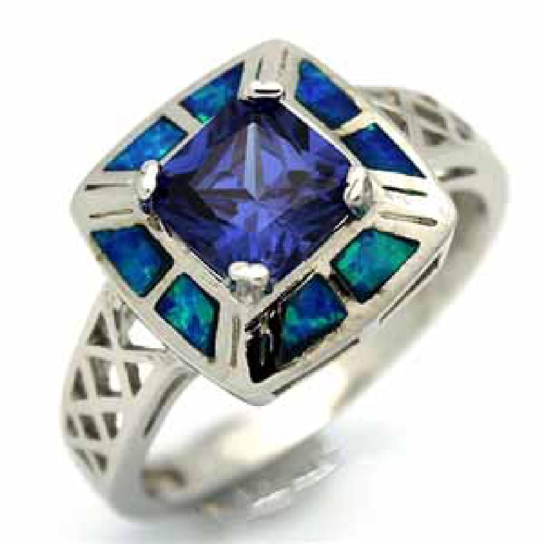 BSA SILVER BLUE OPAL WITH BLUE CZ RING