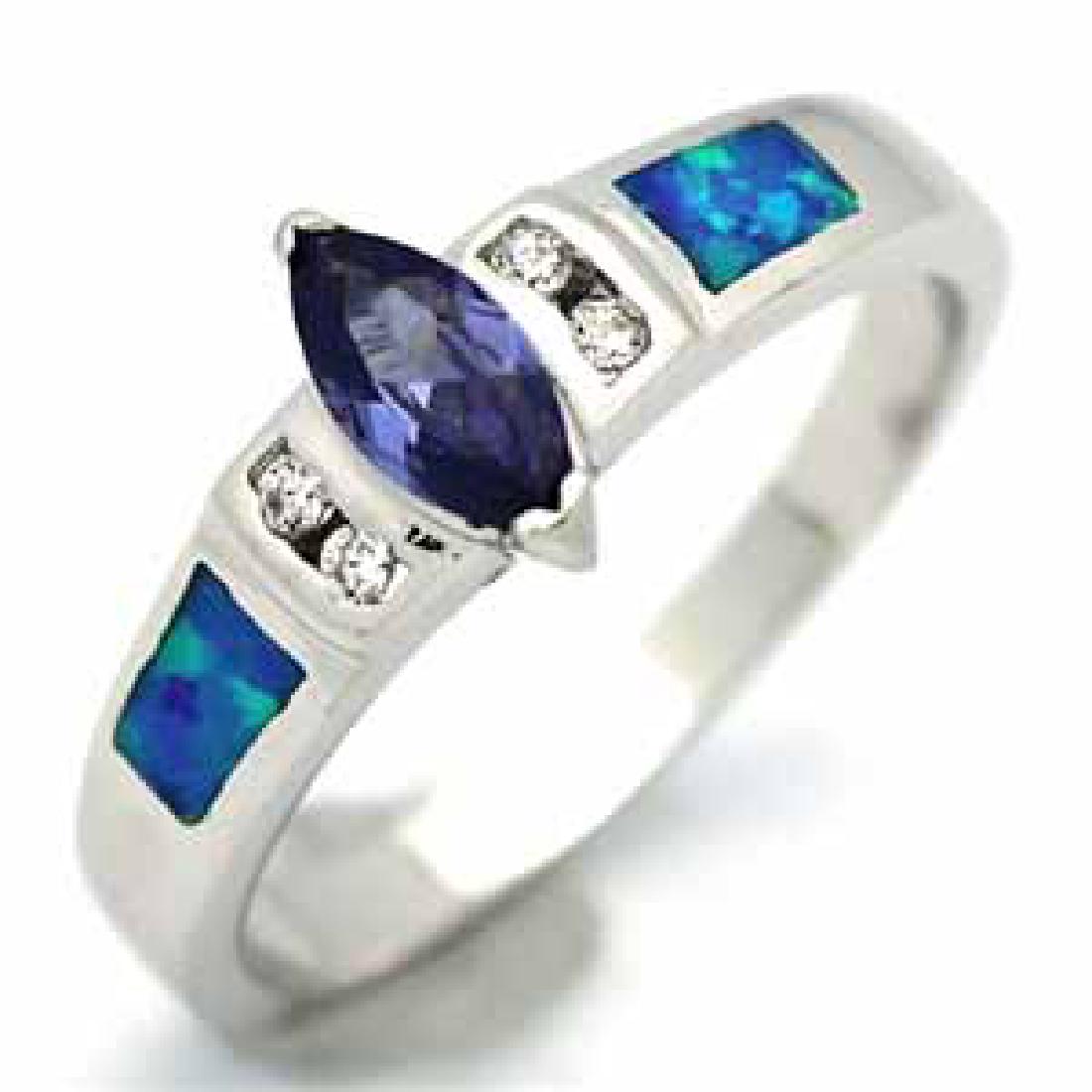 BTA SILVER BLUE OPAL TANZANITE CZ RING