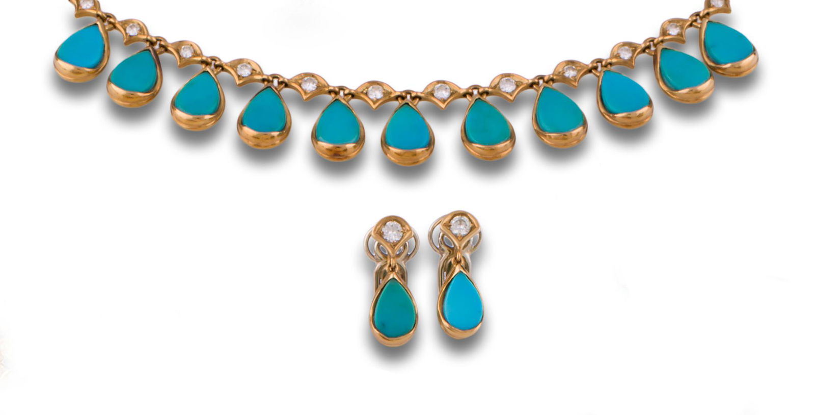 A Gold, Turquoise, Gem-Set and Diamond Necklace and Earring SetJohn Moran Auctioneers, Inc.4.7(503)$2,750(2 bids)4 days Left