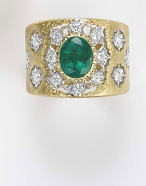 BUCCELLATI, An Emerald, Diamond and Gold Ring