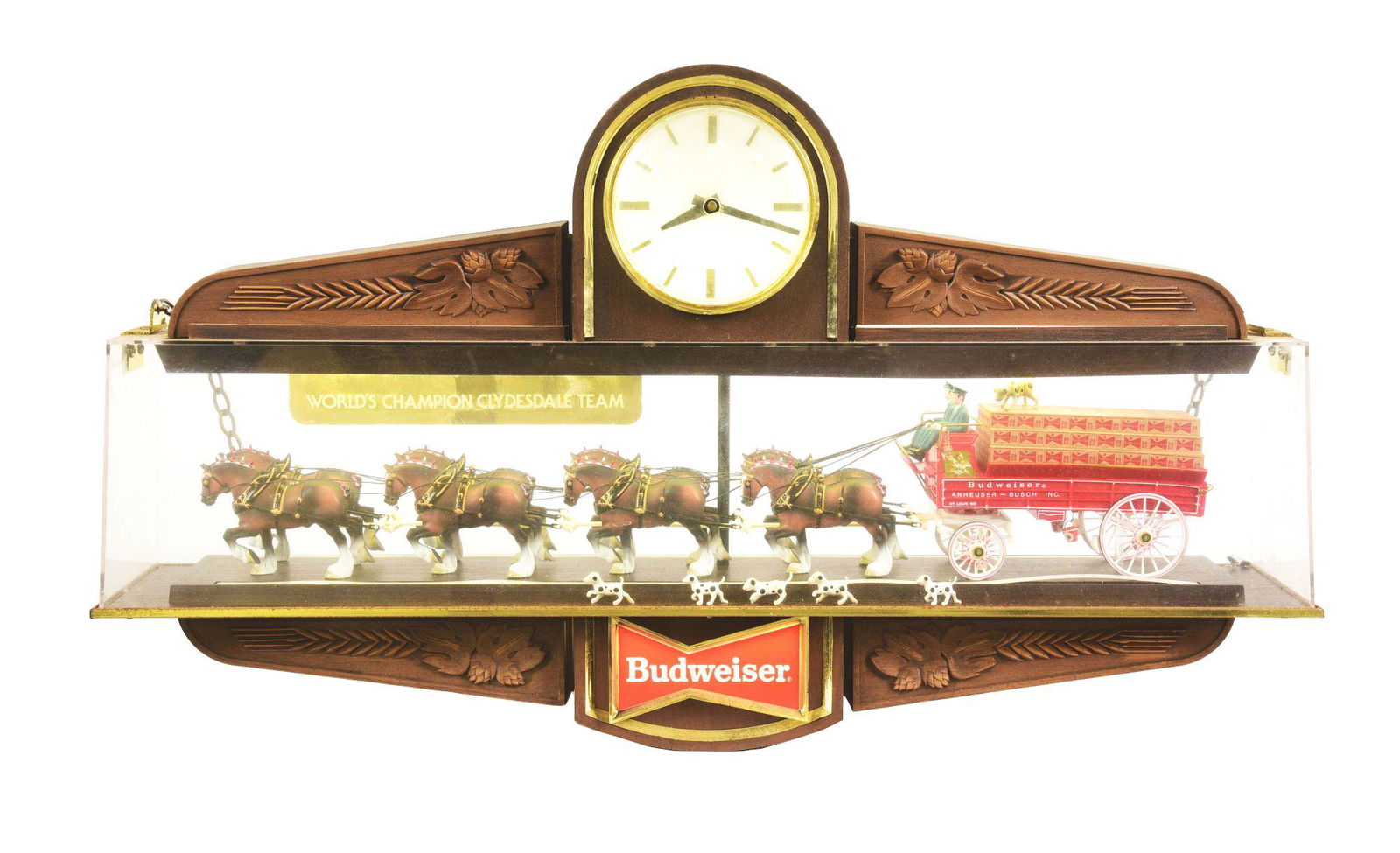 National Rifle Association neon clockMar 28, 2026Model of 2-horse hitch with 3-seat dog cartMar 27, 2026ANHEUSER-BUSCH BUDWEISER WORLD CHAMPION CLYDESDALE TEAM LARGE LIGHT-UP SIGN2 days LeftANTIQUE UNITED ELECTRIC TWO HORSES & CARRIAGE PEWTER MADE IN USA MANTEL CLOCKFeb 25, 2026BUDWEISER CLOCK (SPANISH) ORIGINAL-NO RESERVE!2 days LeftBarrel wagon model with horsesMar 27, 2026Budweiser Beer Wagon & Wells Fargo Stage CoachA Vintage Metallic Figurine Group of Royal 4 Horse-Drawn Carriage Mantle Clock3 days LeftBUDWEISER KING OF BEERS NEON SIGN2 days LeftWooden wall-mount 12-room brothel clockMar 28, 2026Pepsi Cola Light Up Clock With Bottle CapMar 20, 2026Waynes Feed Advertising Clock, lighted, in working condition, red and white graphics with a7 days LeftConcord type banjo clock with acorn finial and rope twist frames, circa 1815. The revere paintedMar 01, 2026COLLECTION OF 3: BUDWEISER ADVERTISING SIGNS2 days LeftDairy wagon model with horsesMar 27, 2026Manorcourt Wall Clock By Bulova JB22 hrs Left