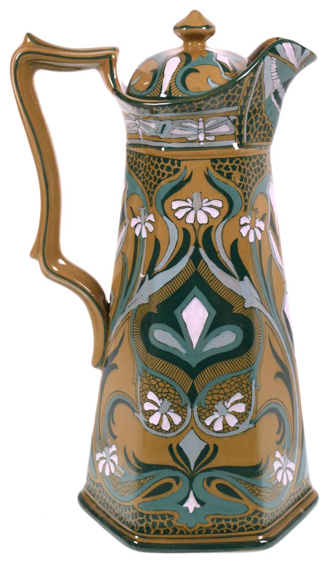 Large 19th-century Staffordshire ironstone jugAntique yellow ware cream pitcher.Mar 06, 2026Haviland & Co. Limoges Chocolate Pot With Lid559 Lots AwayPitcher, Rookwood Art Pottery, #412S, Dated 1888Mar 21, 2026Vintage 20th Century Bar or Bistro Ceramic Pitcher, 1/4 Liter19th Century Pratt Ware PitcherBuffalo Pottery Deldareware Pitchers and Teapot (3)Mar 28, 2026Art Nouveau Carl Tielsch Altwasser Chocolate Pot507 Lots AwayA Song Dynasty celadon open-piece gilt warm wine pot6 days LeftA piece of Song Dynasty Jingdezhen Hutian kiln shadow celadon potMar 07, 2026Tiffany Sterling Chocolate Pot, Edward Winslow Design3 days Left1920s Alfred Meakin Ironstone Soup PitcherBlakeman & Henderson Limoges Chocolate Pot705 Lots AwayAntique 20th Century Venetian-Style Decorative Ceramic TeapotAmerican Art Pottery Vase, Possibly Weller Greenbriar, ca. 1905–1915Mar 07, 2026Antique Nippon Hand Painted Cocoa Chocolate Pot504 Lots Away